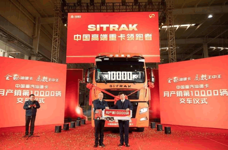 中國(guó)重汽集團汕德卡月(yuè)産銷1萬輛(liàng)暨交車(chē)儀式隆重舉行(xíng)÷ [2020-12-04]