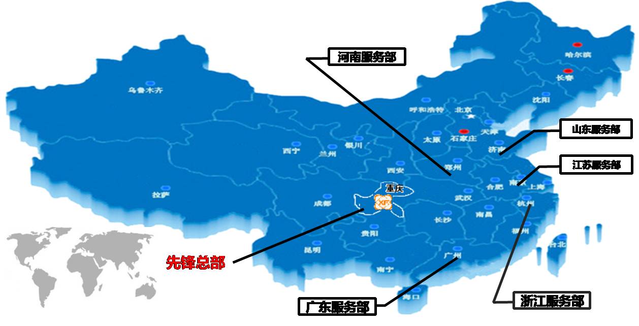 公司總部設立在山(shān)城(chéng)重慶,另在山(shān)東(dōng)、江蘇、河(hé)南(nán)、廣東(dōng)、浙江設有(yǒu)五個(g↕è)駐外(wài)服務部,能(néng)夠快(kuài)速了(le)解市(shì)場(chǎng)信息、迅速反應。